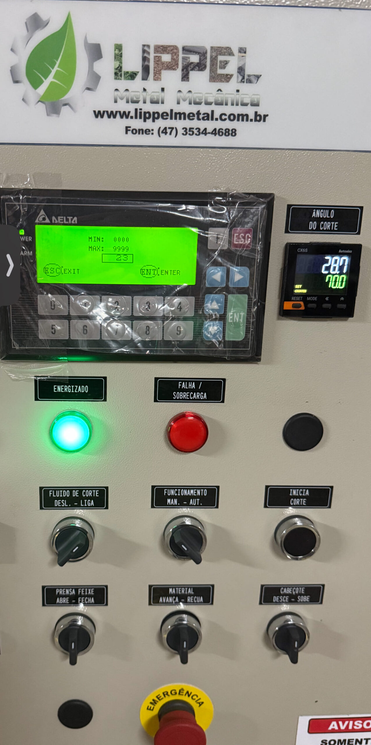 Painel de comando elétrico com proteção.